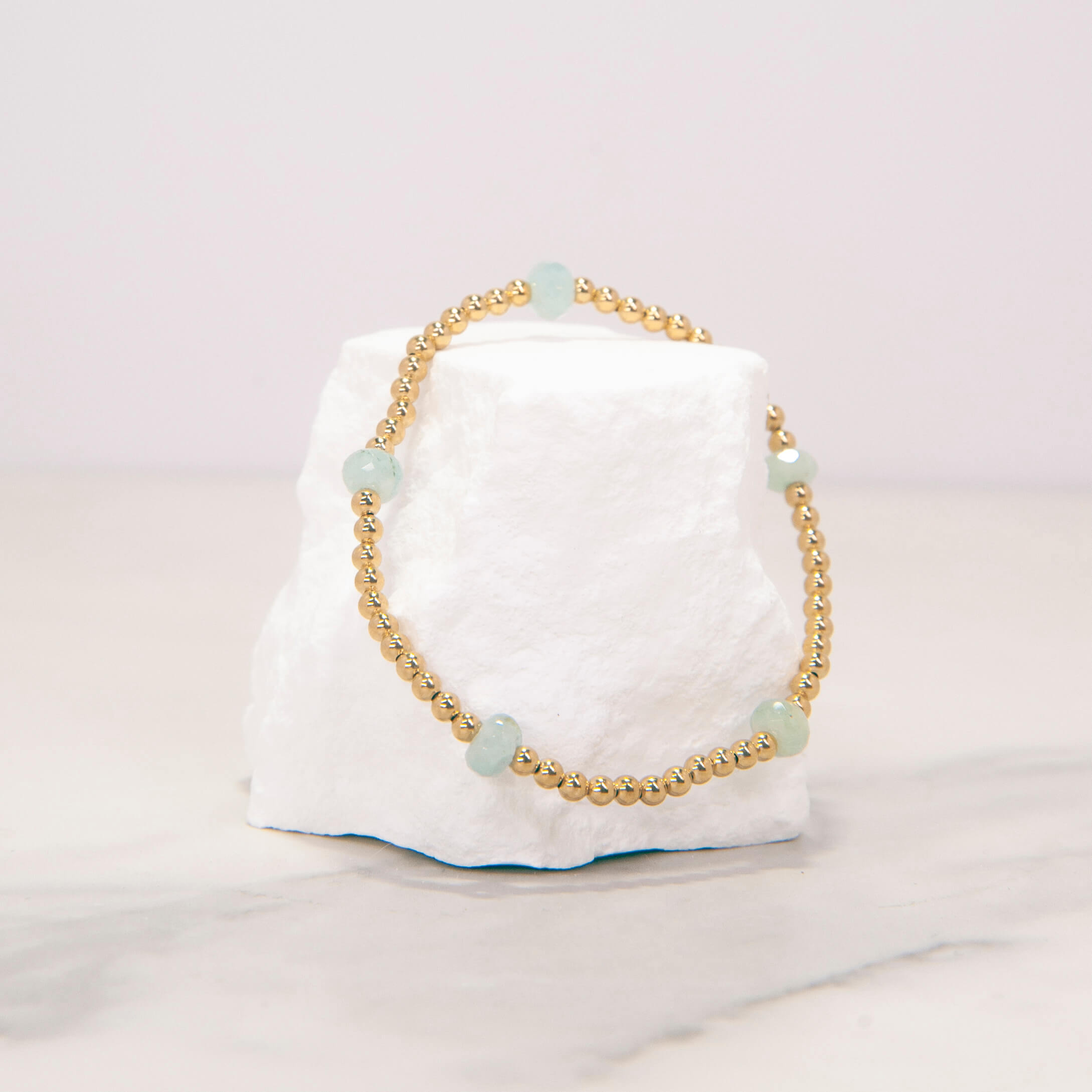 3mm Gold Filled with 6mm Aquamarine Bracelet