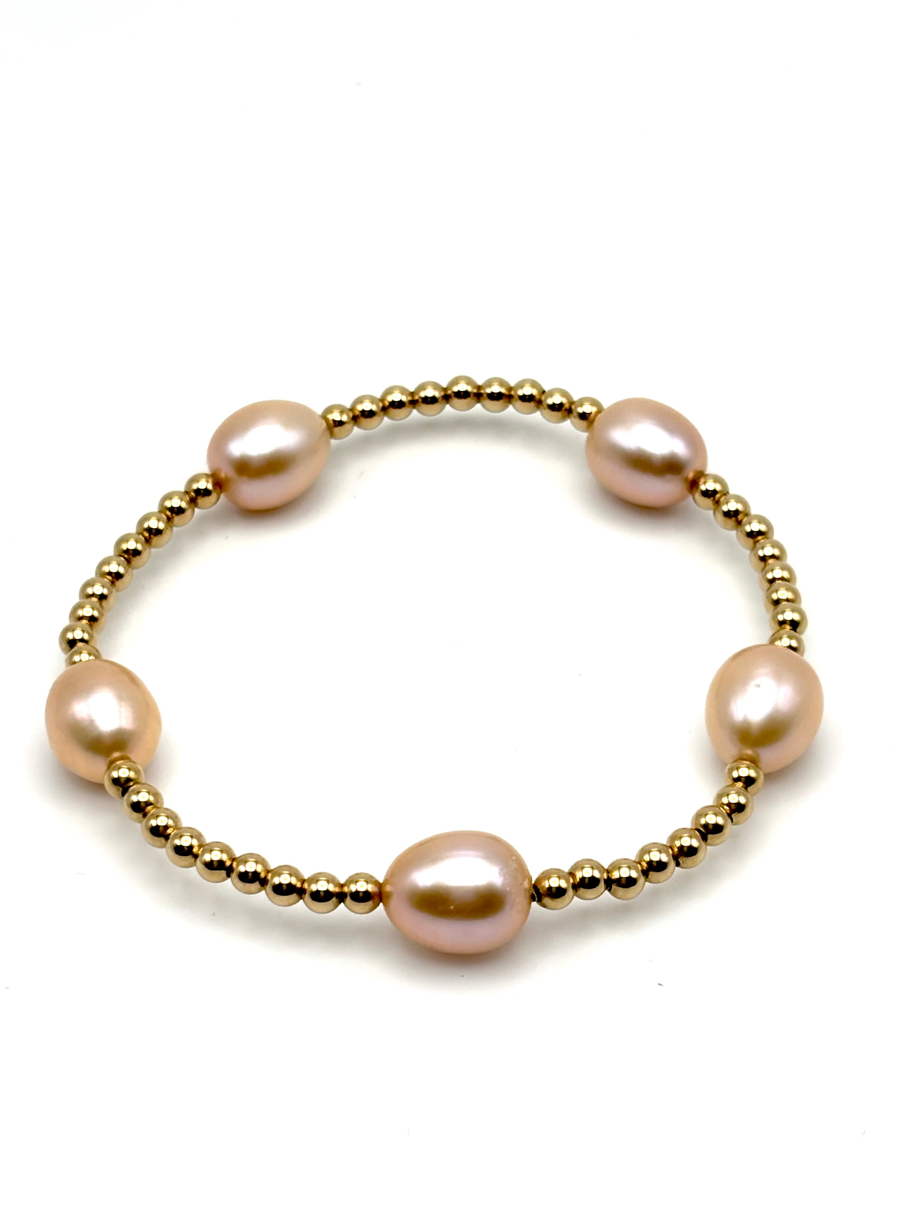 3mm Gold Bead / Large Pink Pearl Bracelet