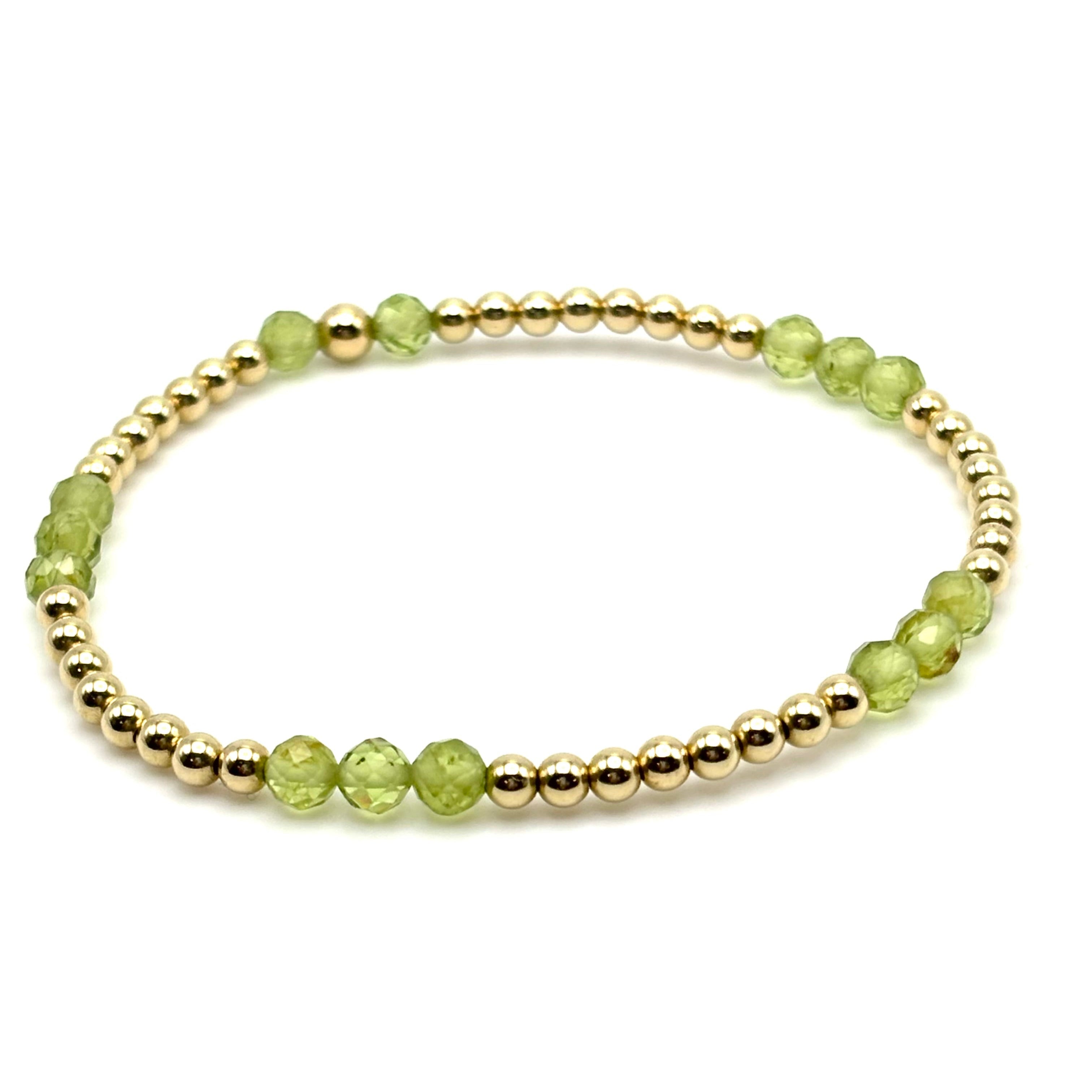 Made with 3mm gold filled beads with intermittent genuine 4mm peridot gemstones. This bracelet is perfect for all the August babes! Looks great worn solo or can be stacked with some of your other favs. ❤️