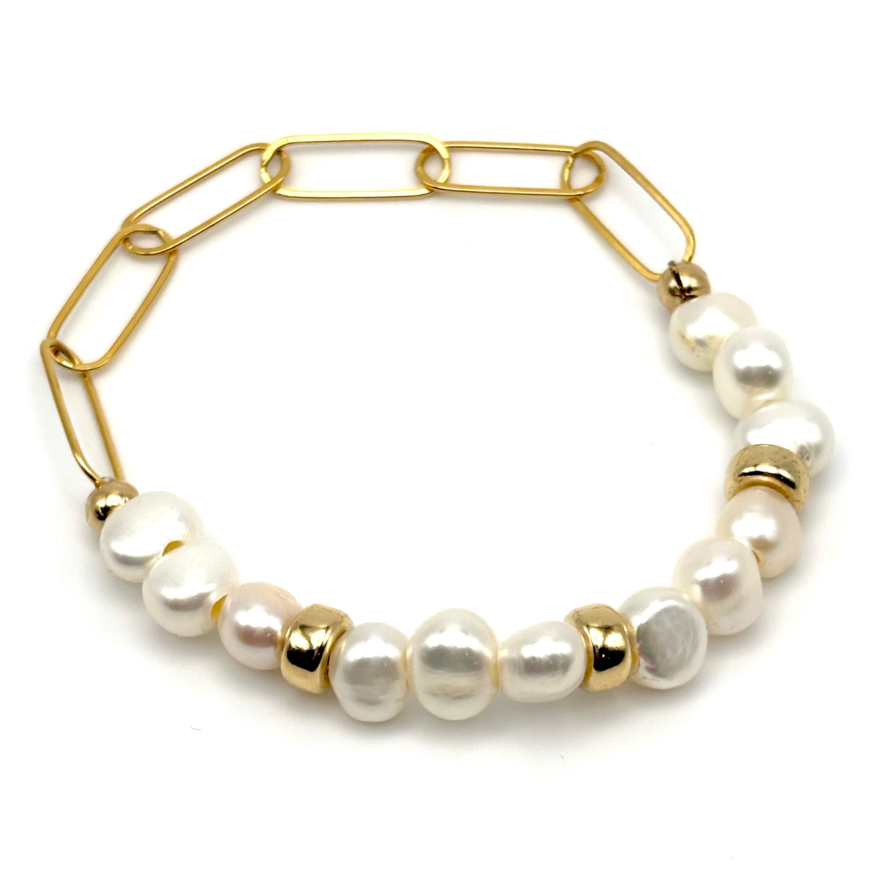 The perfect combo of pearl and gold! This bracelets is beautiful worn solo, but you can also add charms for a more trendy, personalized look.