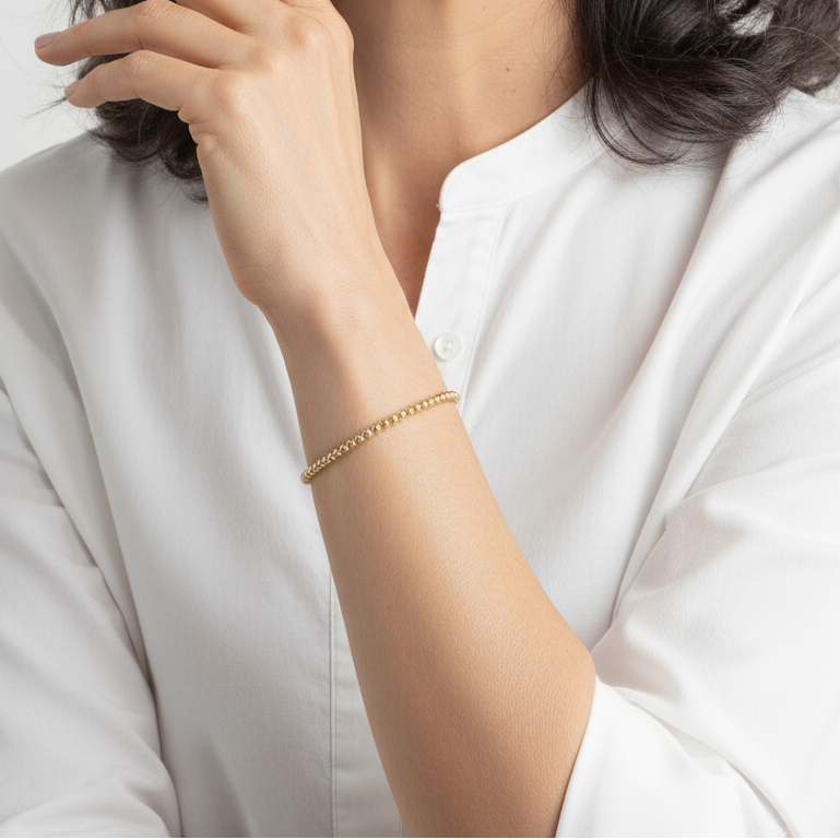 3mm gold filled beaded bracelet. The perfect staple in any wrist stack! Can be worn solo or stacked with some of your other favs! This one is definitely a staple in your wrist stack.❤️