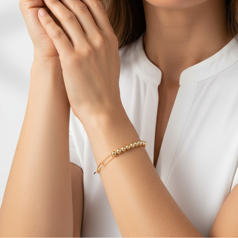 5mm Gold Filled Bead/ Paperclip Bracelet