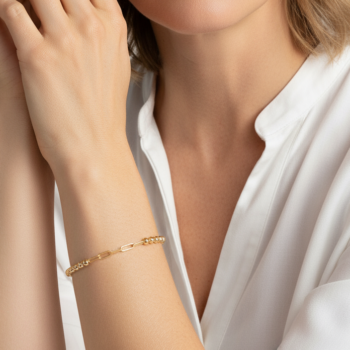 5mm Gold Filled Bead/ Paperclip Bracelet