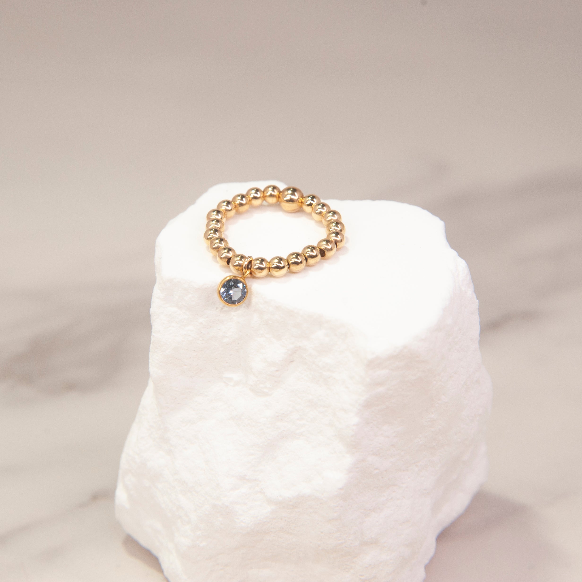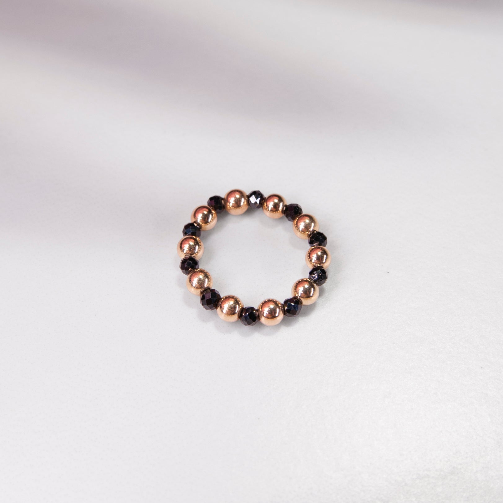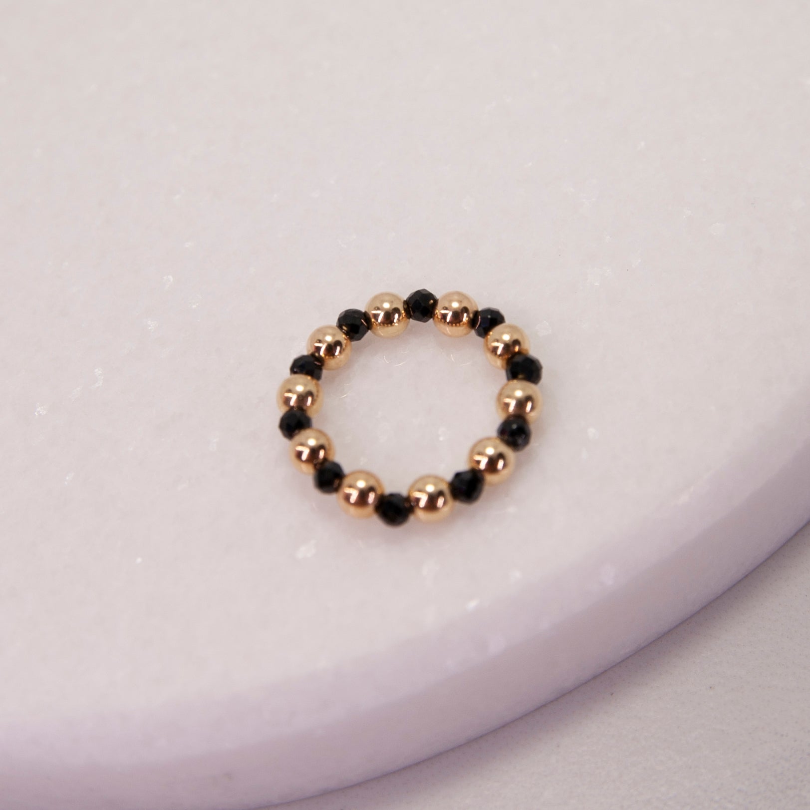 Black Spinel w/ 4mm Gold Filled Beaded RIng