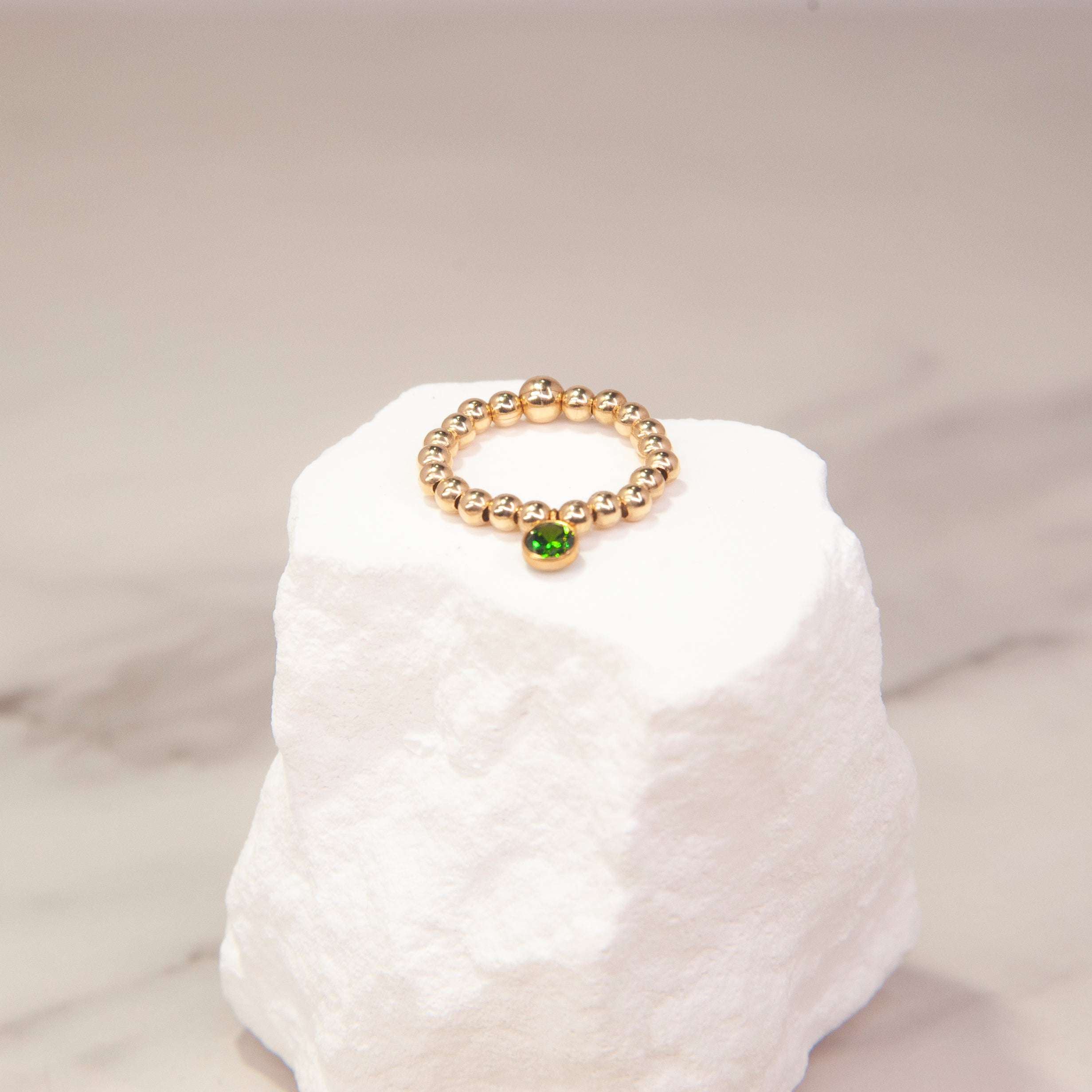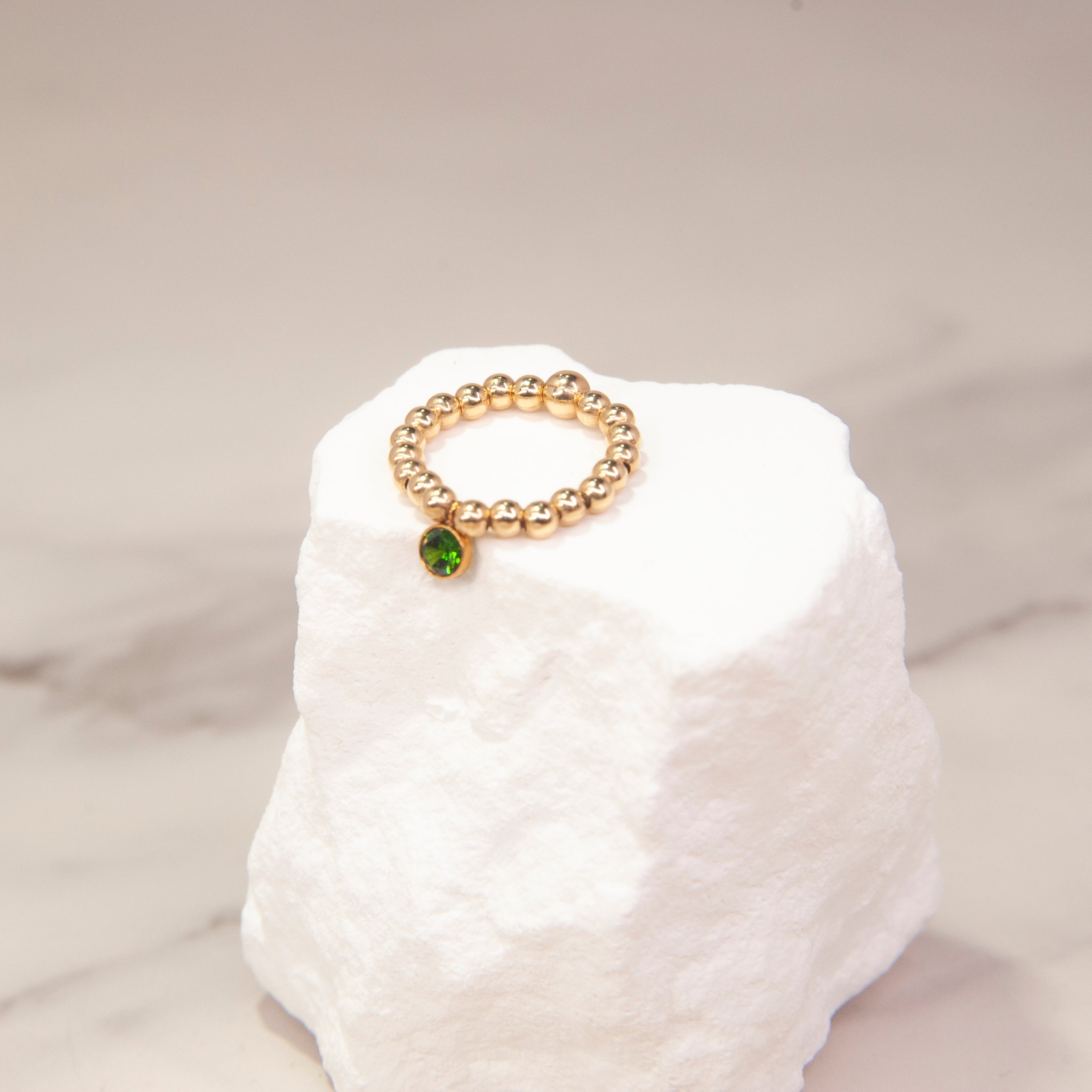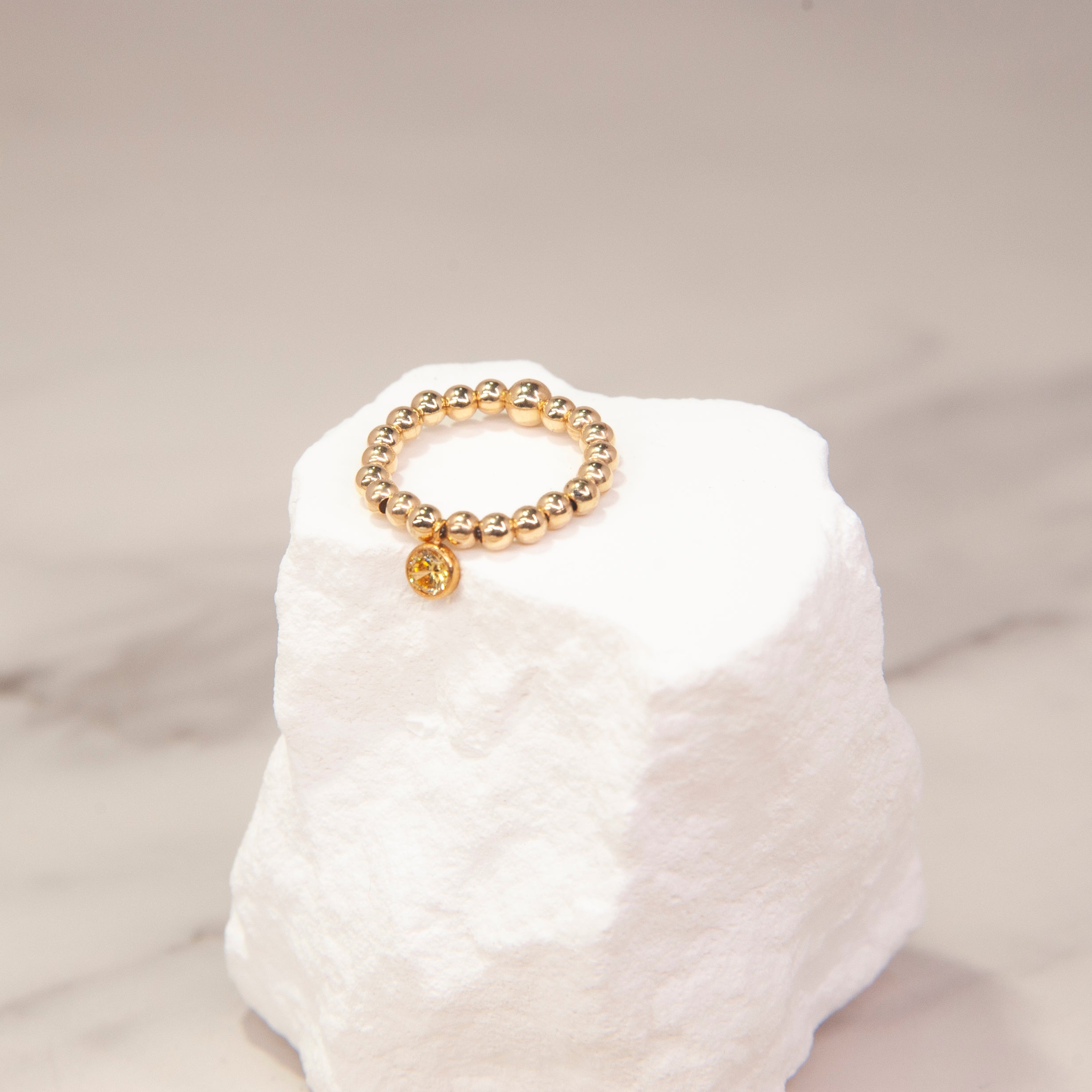 Black Spinel w/ 4mm Gold Filled Beaded RIng