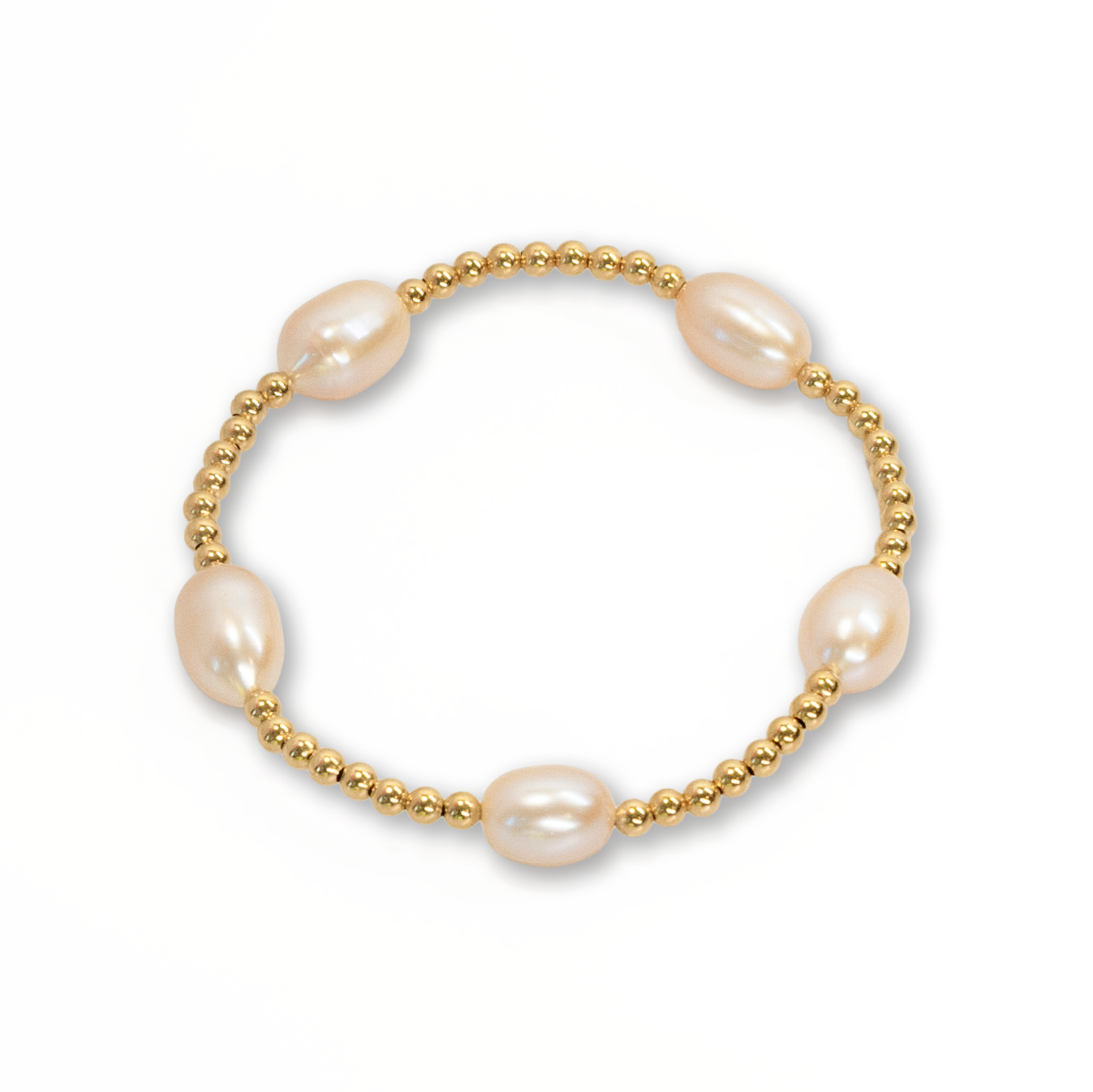 Made with 3mm gold filled beads and the most beautiful petal pink freshwater pearls! This bracelet looks great worn solo, but also stacks well with some of your other favs. Definitely a summer must have! ❤️