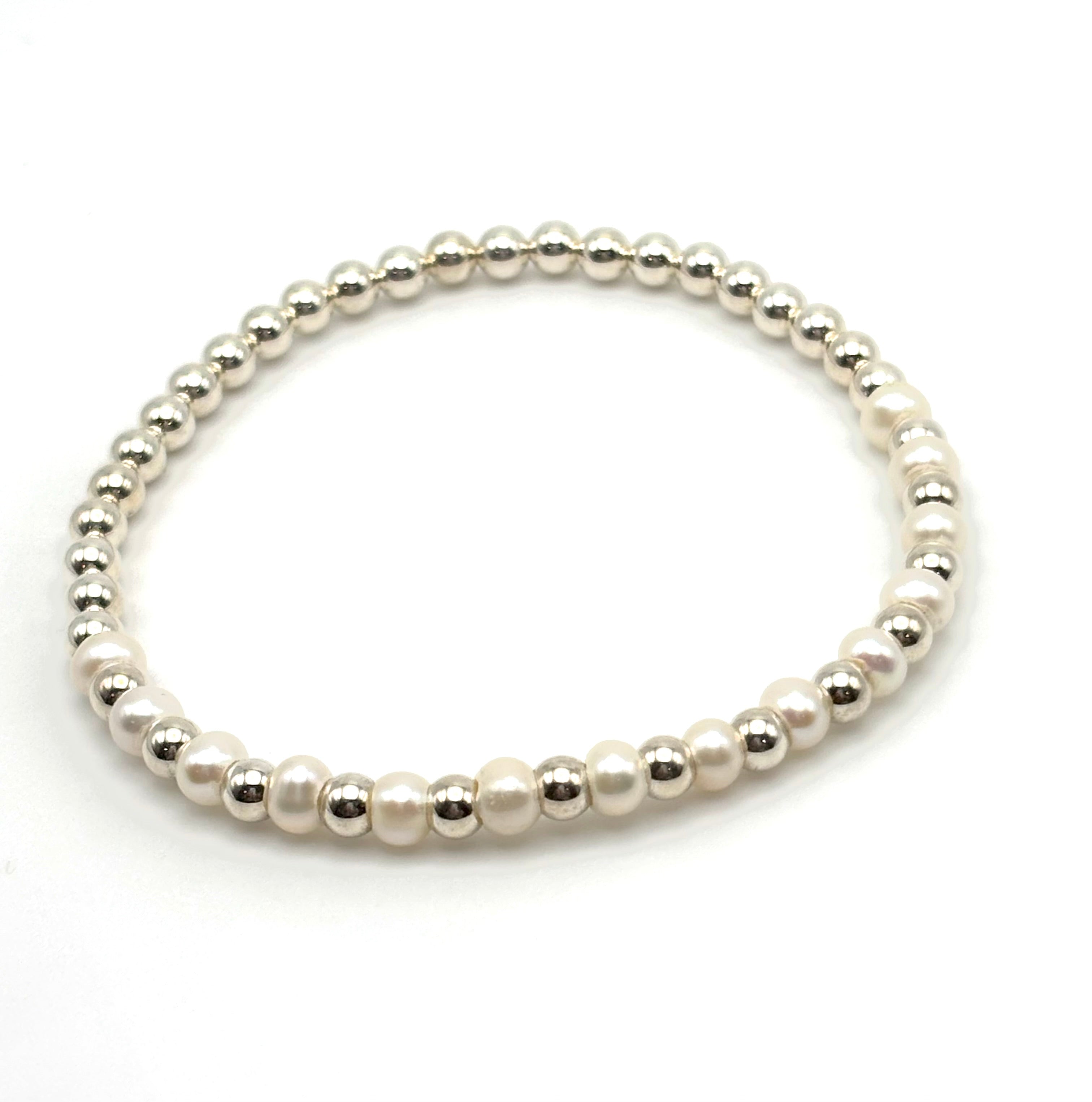 4mm Sterling Silver / Pearl Mix Beaded Bracelet