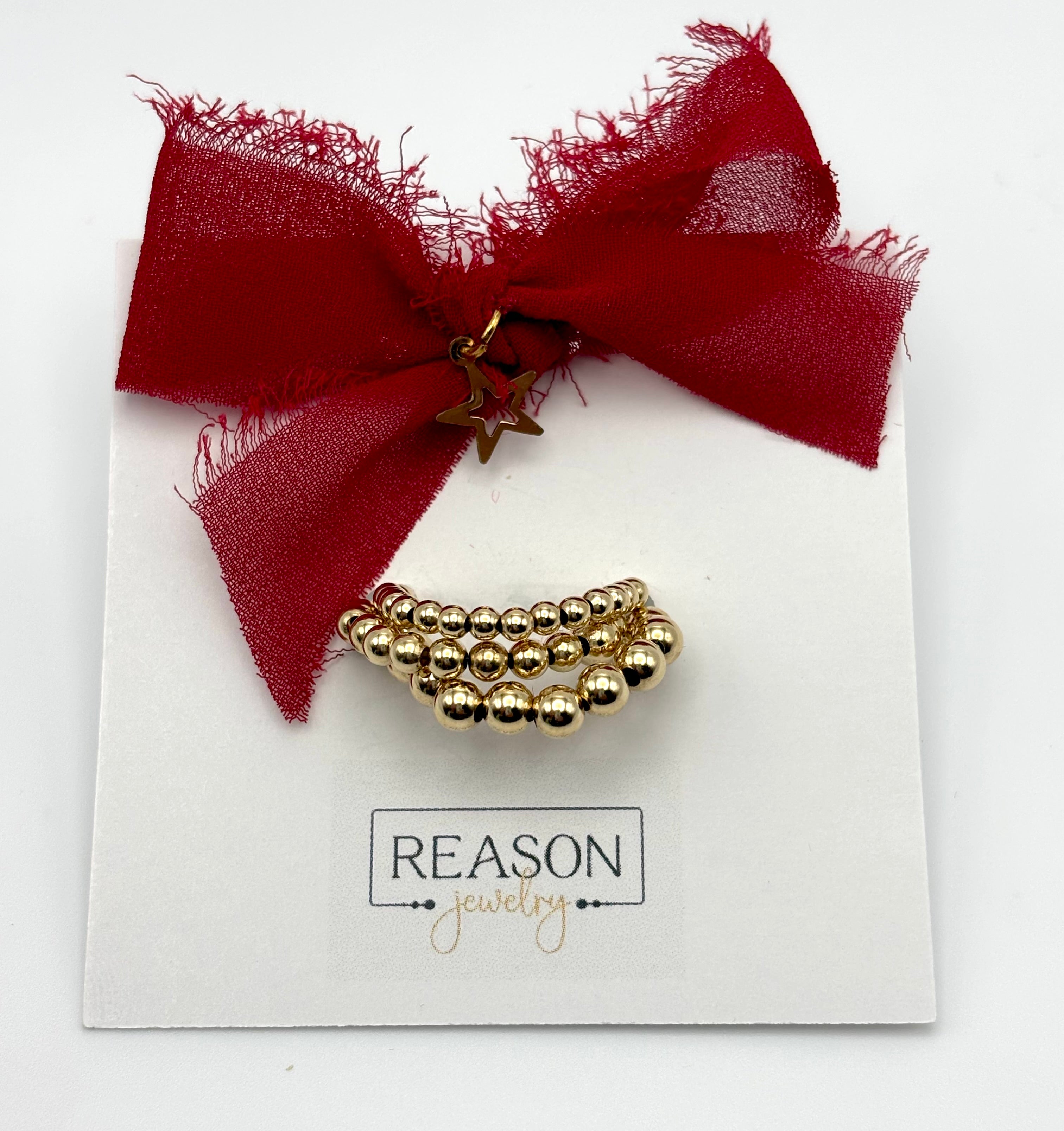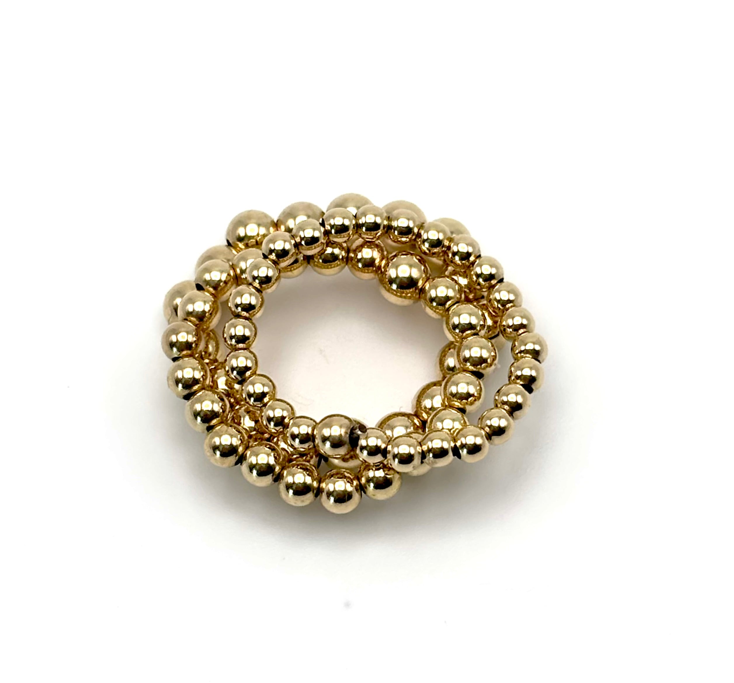 Includes (1) 2.5mm gold filled, (1) 3mm gold filled, and (1) 4mm gold filled beaded rings. Your classic gold stack ...never goes out of style!