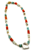 Made with multi-color shell beads, gold filled beads, and large biwa pearl. This necklace defines summer!