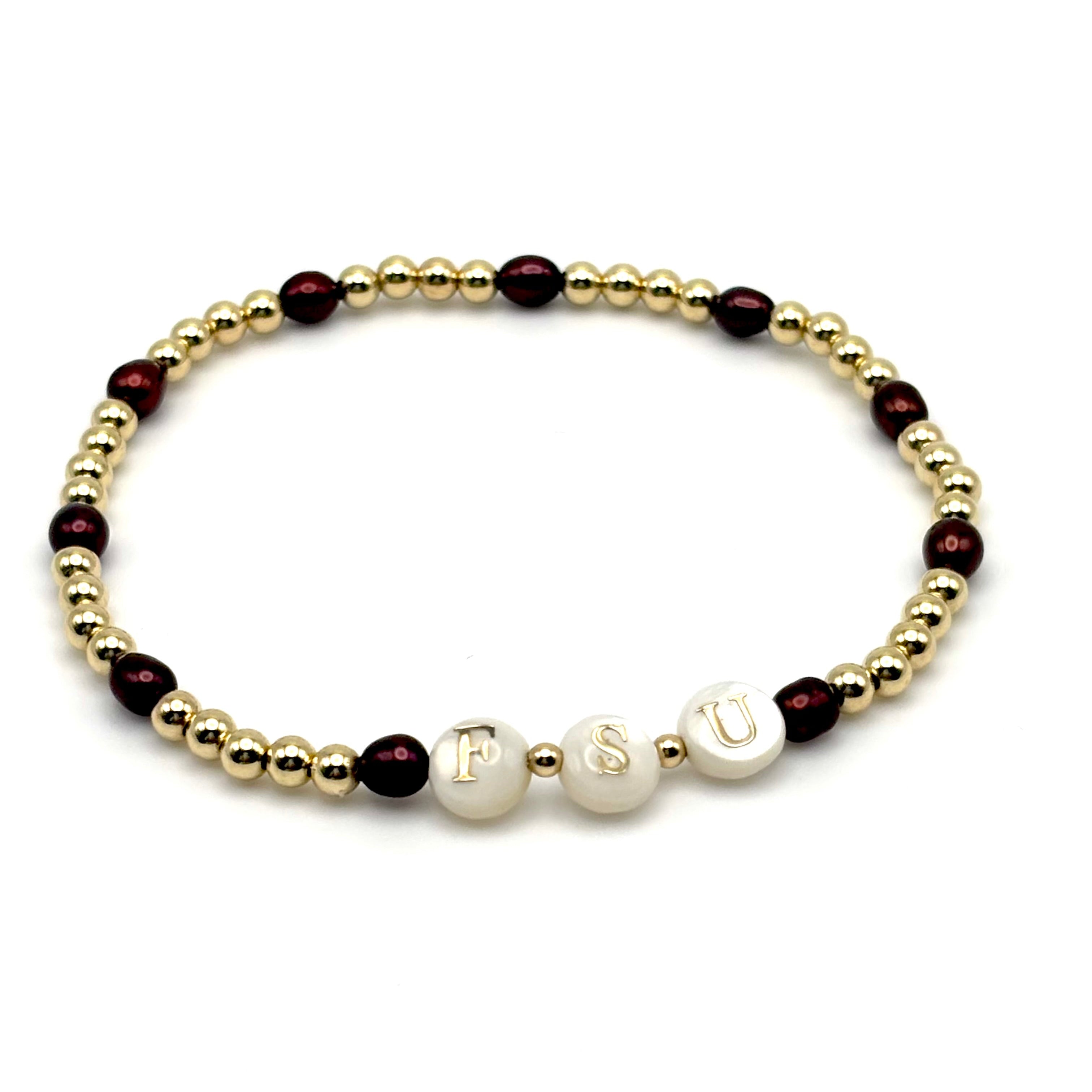FSU Bracelet w/ Garnet Freshwater Pearls