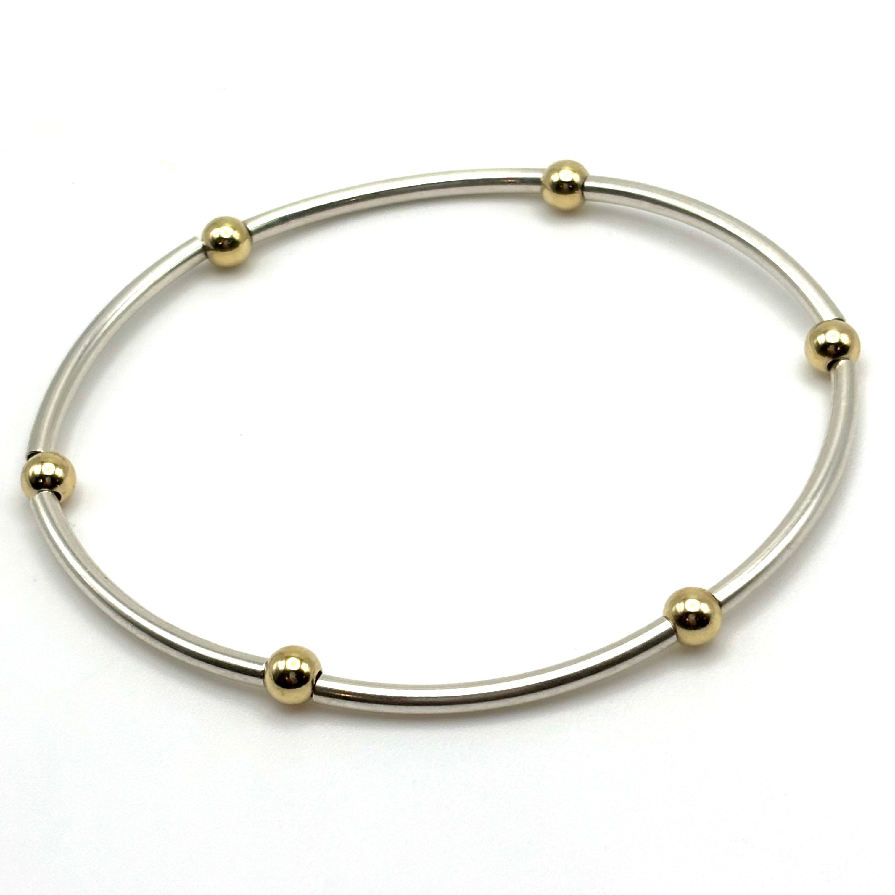 Mixed Metal Beaded Bangle w/ 4mm Gold Bead
