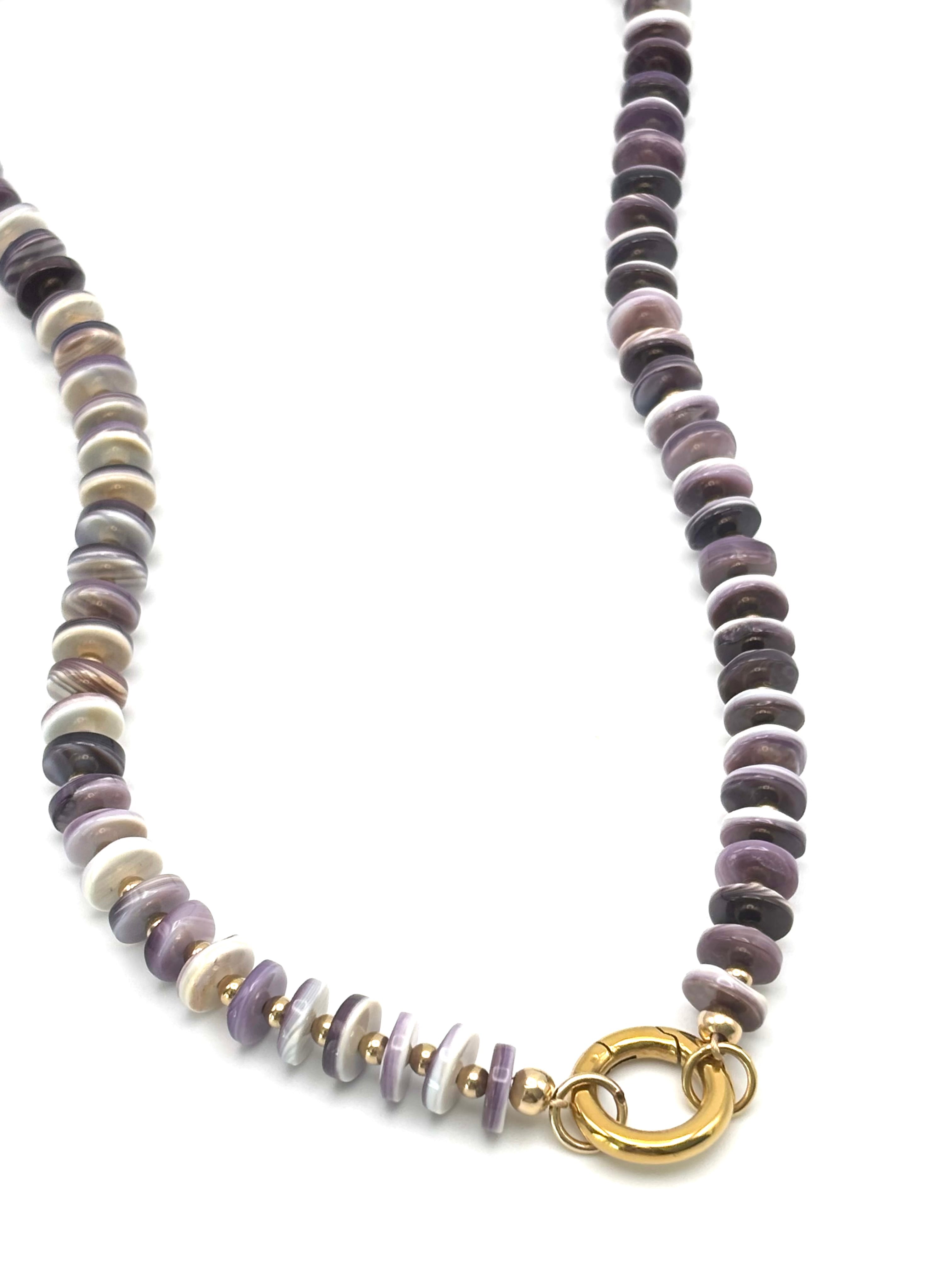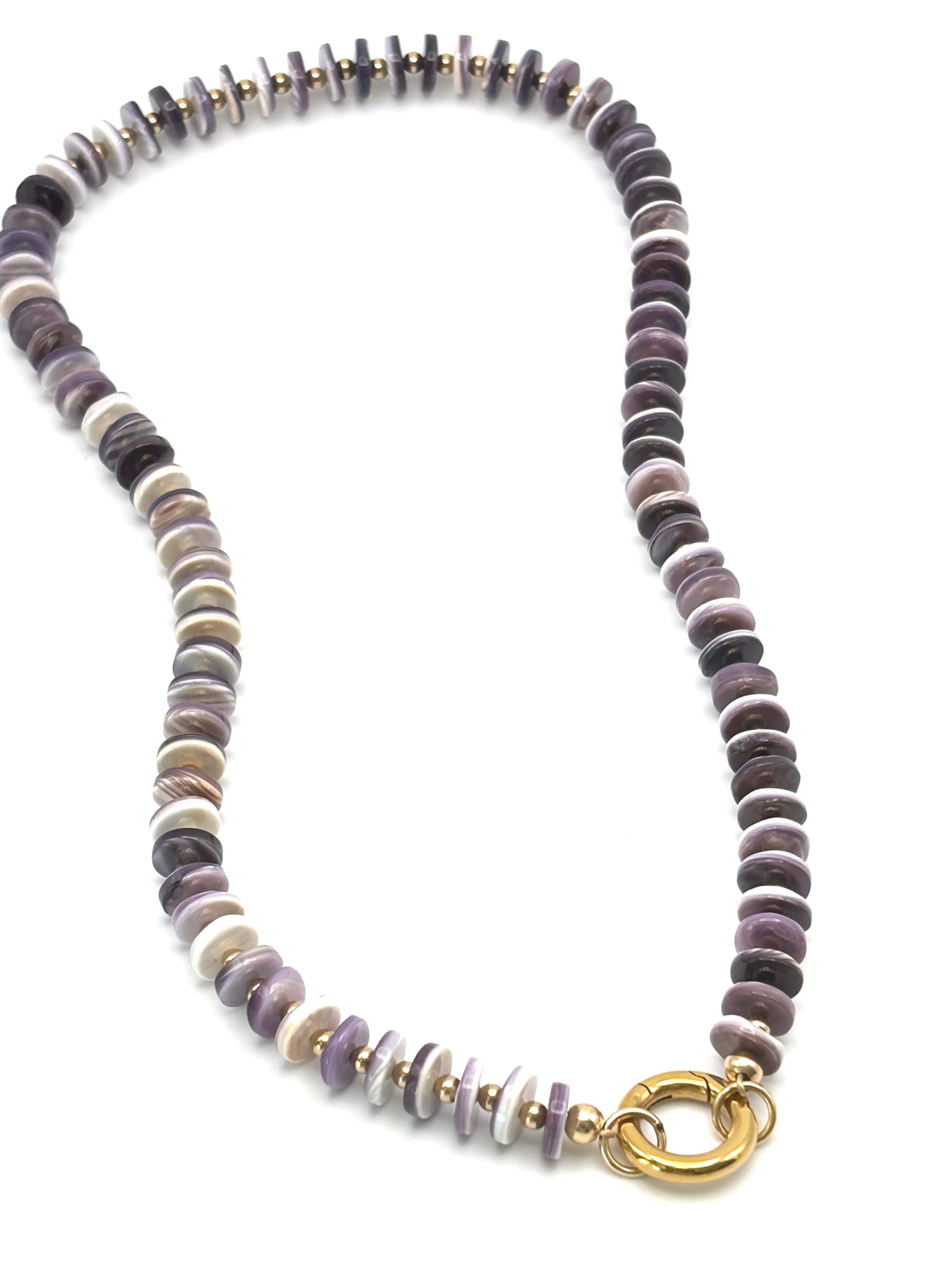 Made with wampum shell and gold filled beads. Includes a carabiner which allows you to add charms (click link to see charm options) or you can wear it, as is. Our carabiner necklaces define versatility!