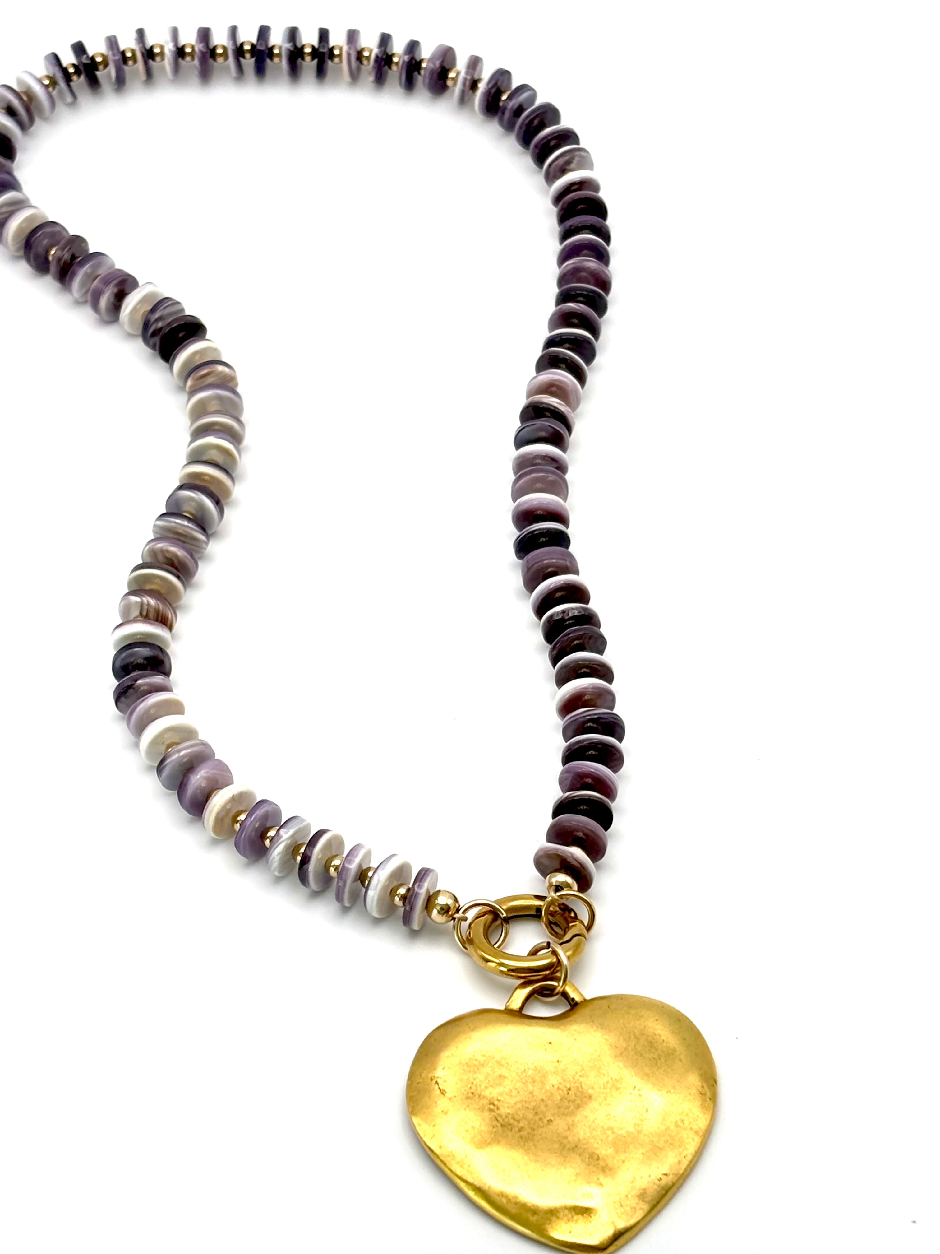 Wampum Shell w/ Gold Bead Carabiner Necklace (Heart not included)