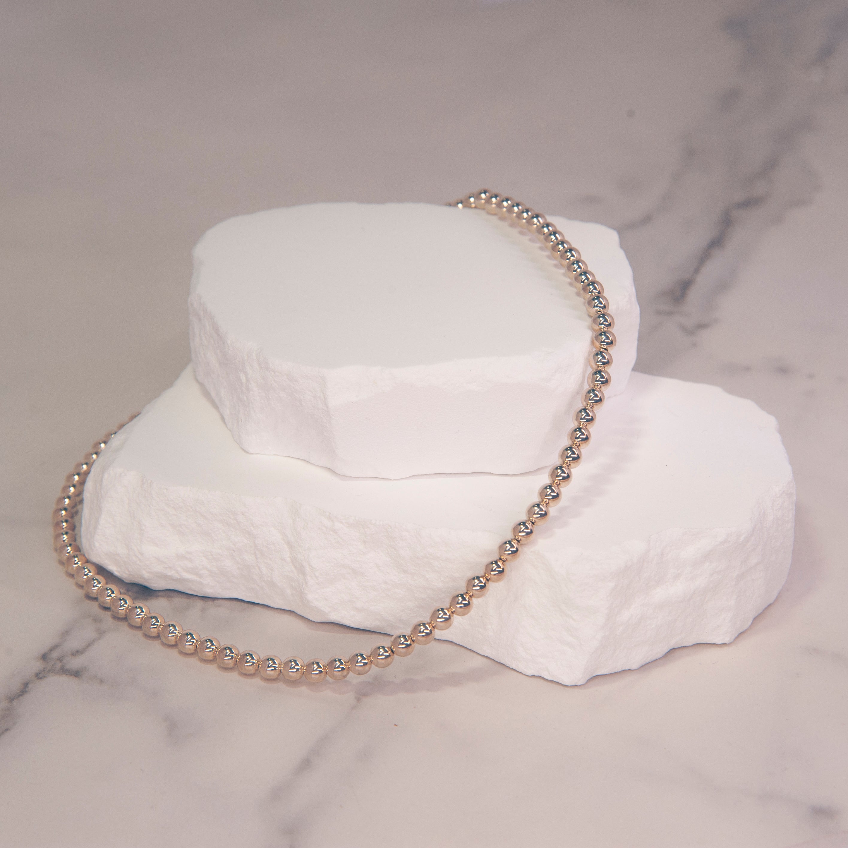 Made with 5mm sterling silver beads strung on a sterling silver chain. If you are a silver girl, this is a must have! Layers beautifully with all your other silver necklaces.
