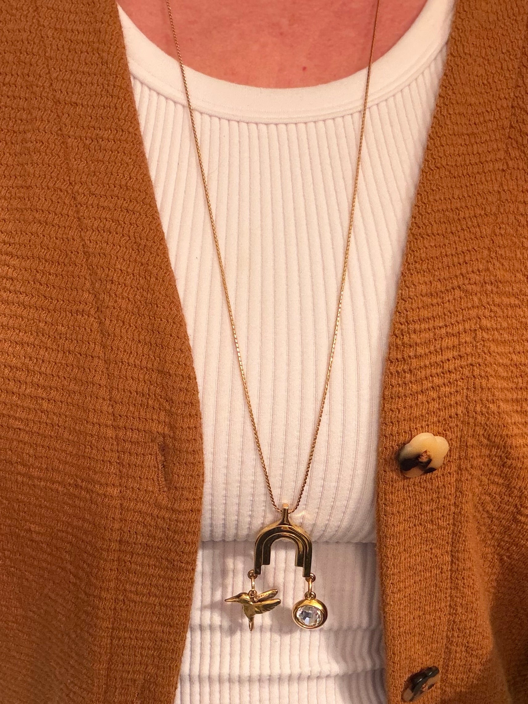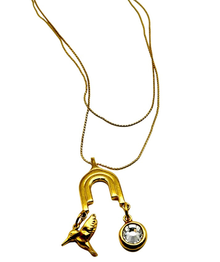 Made with vintage chain and charm holder with a hummingbird and rhinestone charm. One-of-a-kind. Only ONE available.