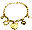 Made with 12K antique gold chain and various heart charms. Chain includes (5) carabiners that allow you to interchange charms. Therefore, you can change the look of this necklace, allowing for so many different styling option!