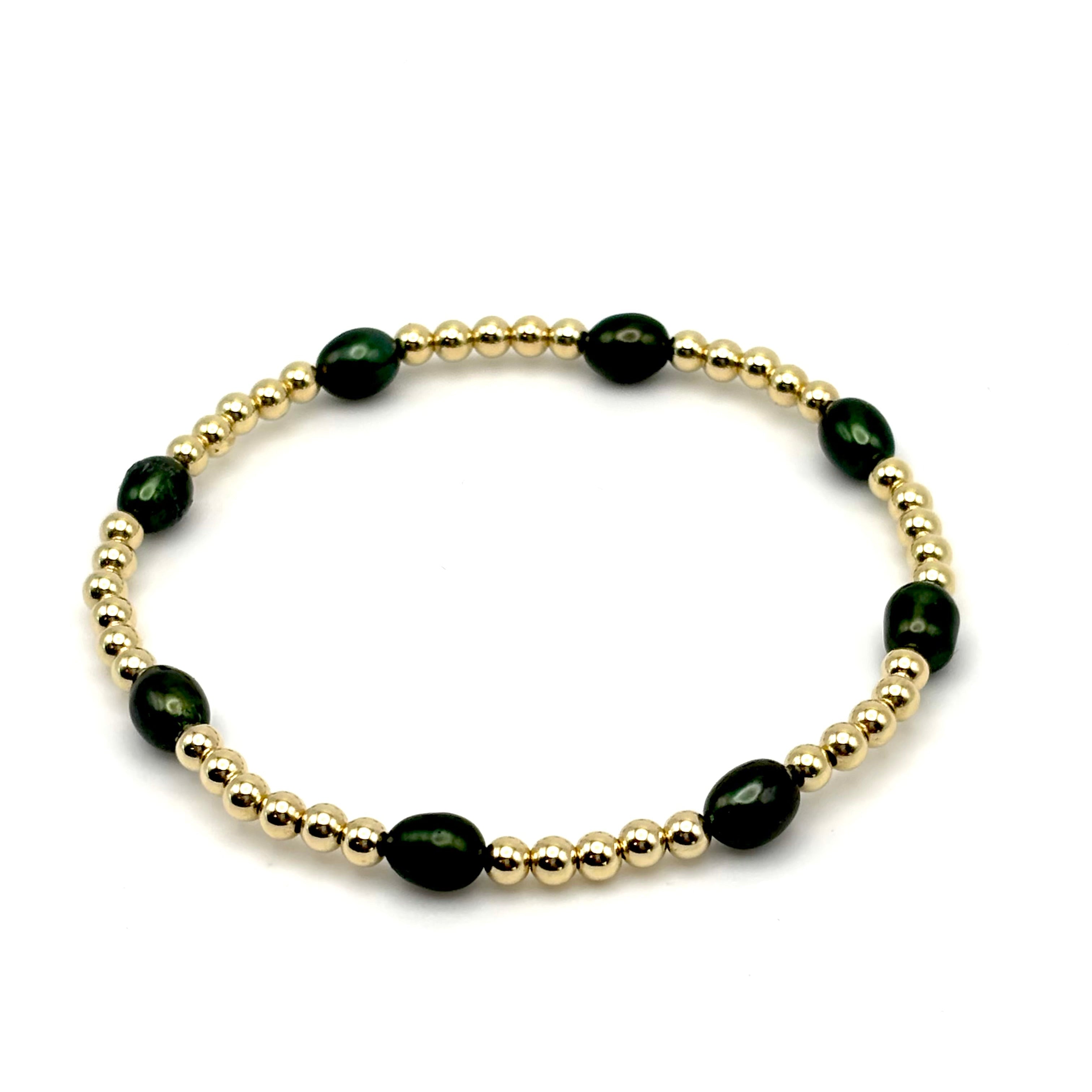 Made with 3mm gold filled beads and the most beautiful emerald green freshwater pearls! This bracelet is perfect for all of our May babies. 💚💚 Looks great worn solo or stacked with some of your other favs!