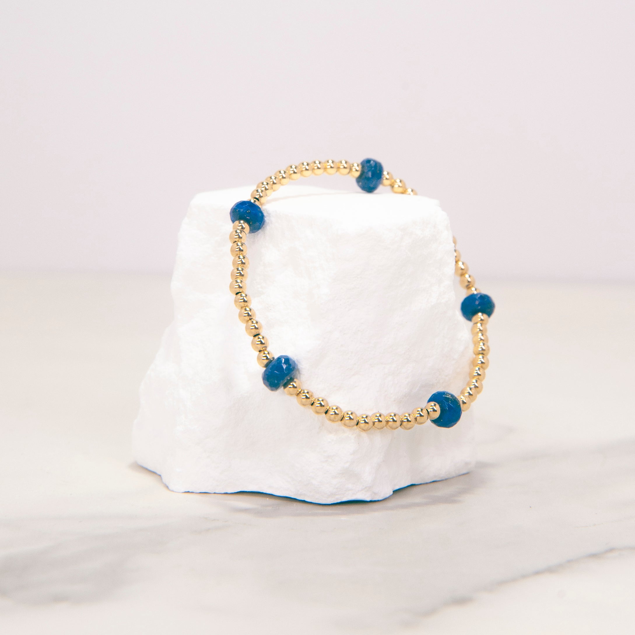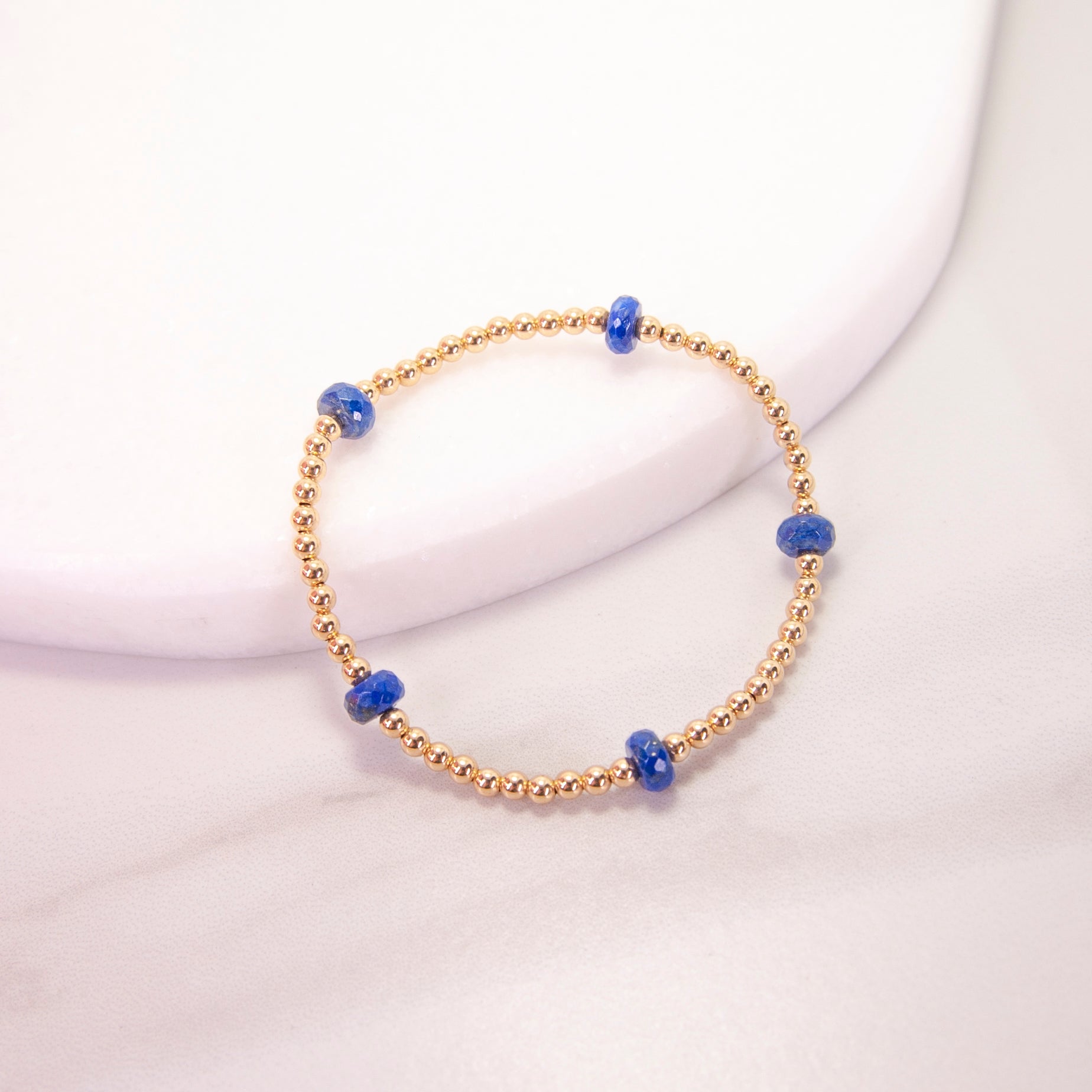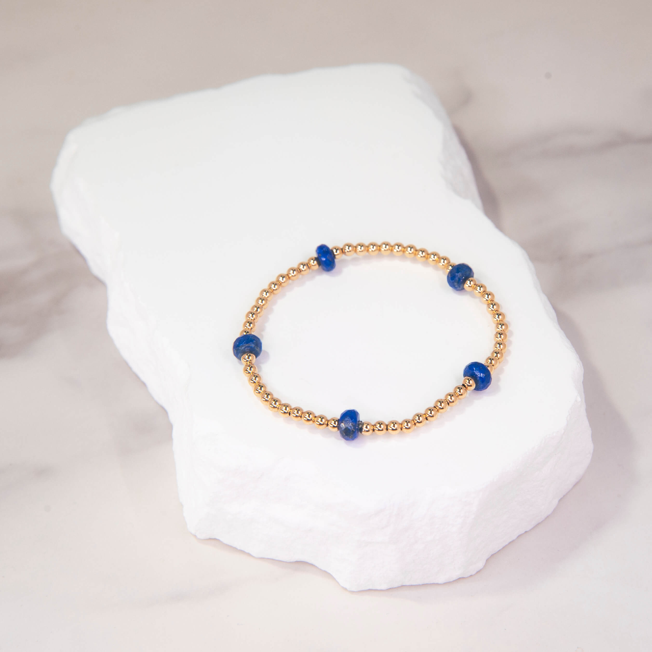 Made with 3mm gold filled beads and 6mm genuine lapis gemstone. Our gemstone bracelets are stunning! This bracelet looks beautiful when worn solo or stacked with some of your other favs!