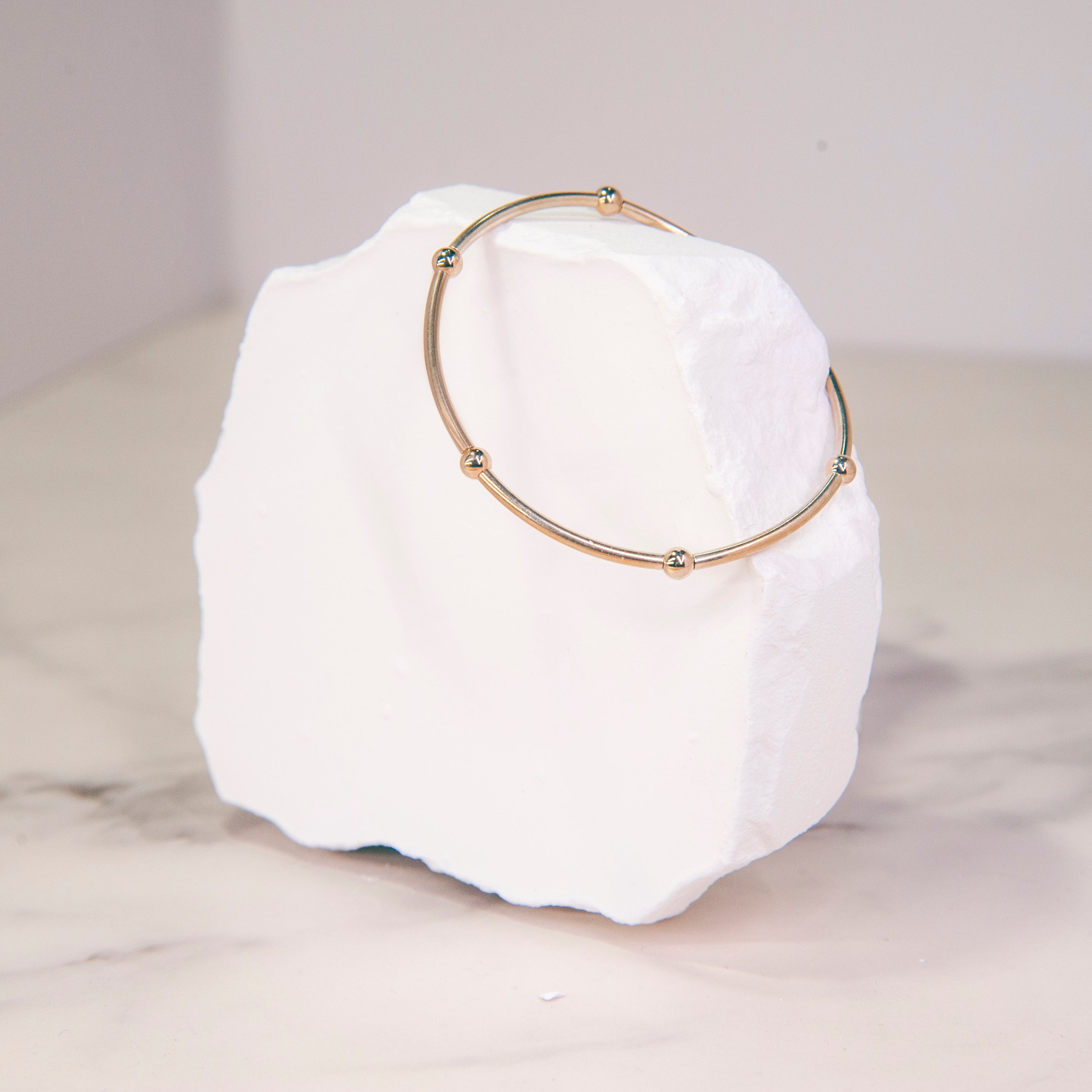 Made with a thinner 14K gold filled tube bead and 3mm gold filled spacer bead. This bracelet is the ultimate bangle bracelet! It is strung on high quality elastic, allowing for the perfect fit. ❤️