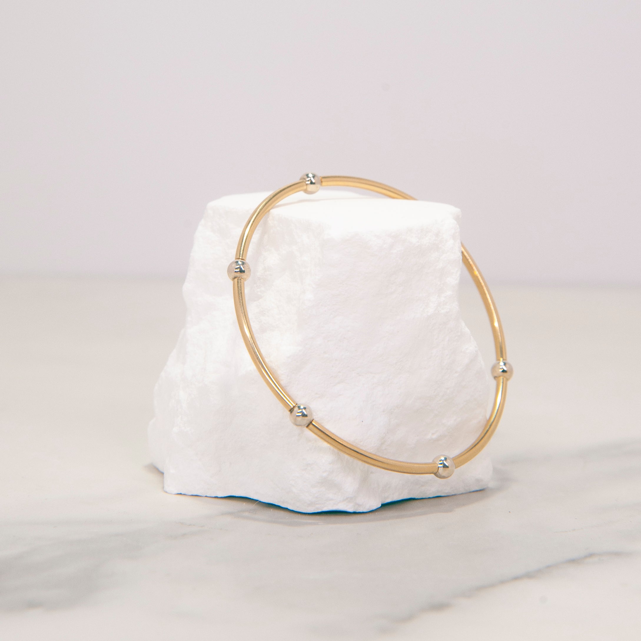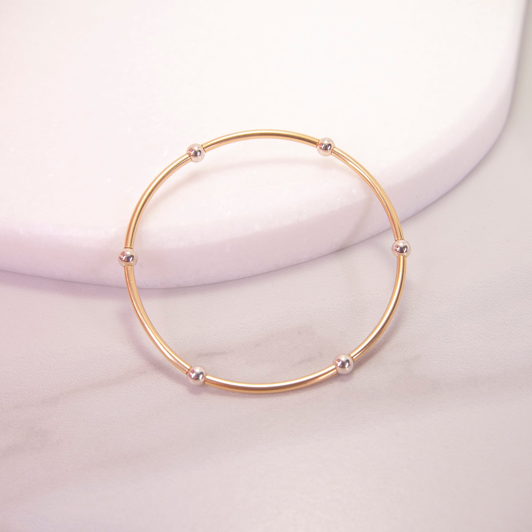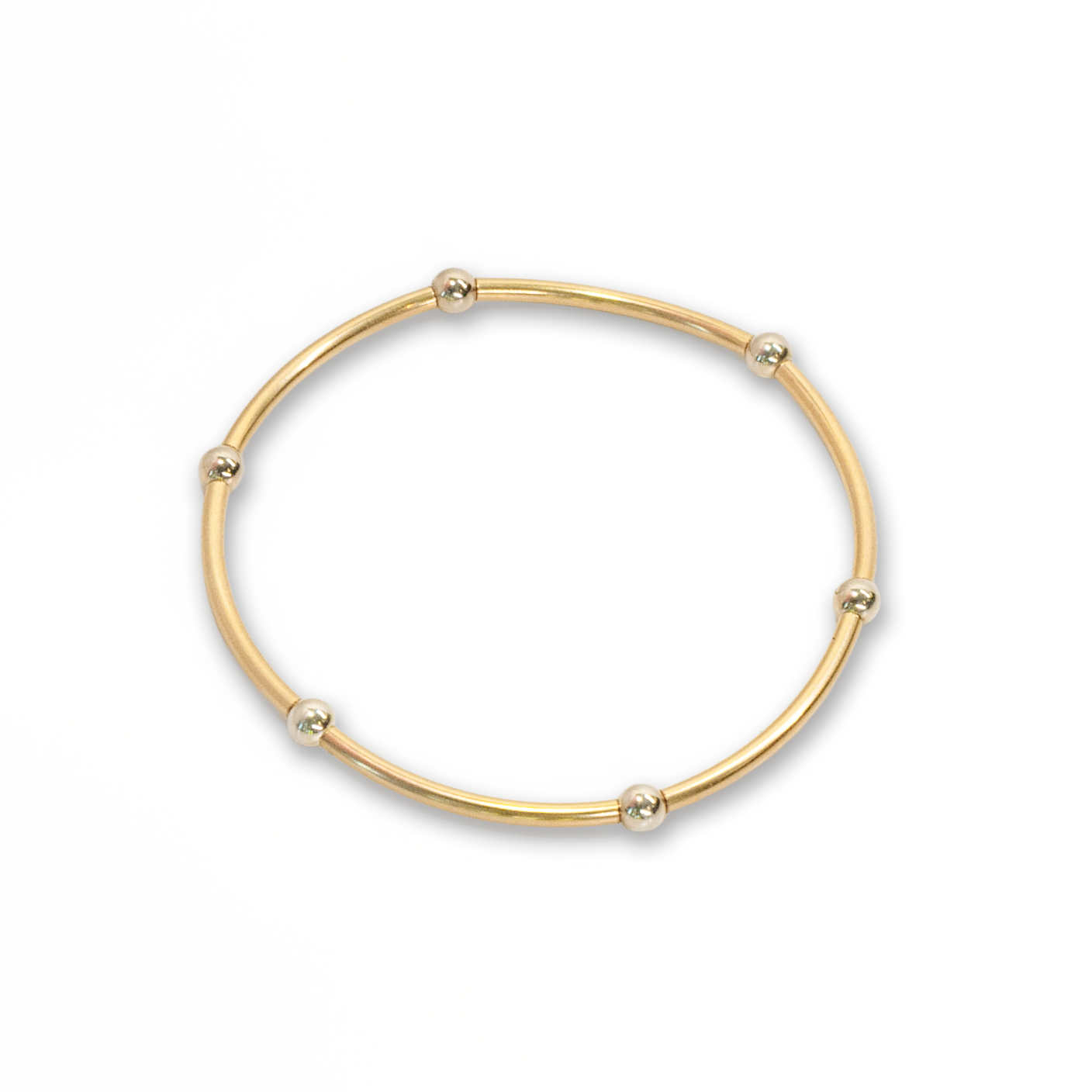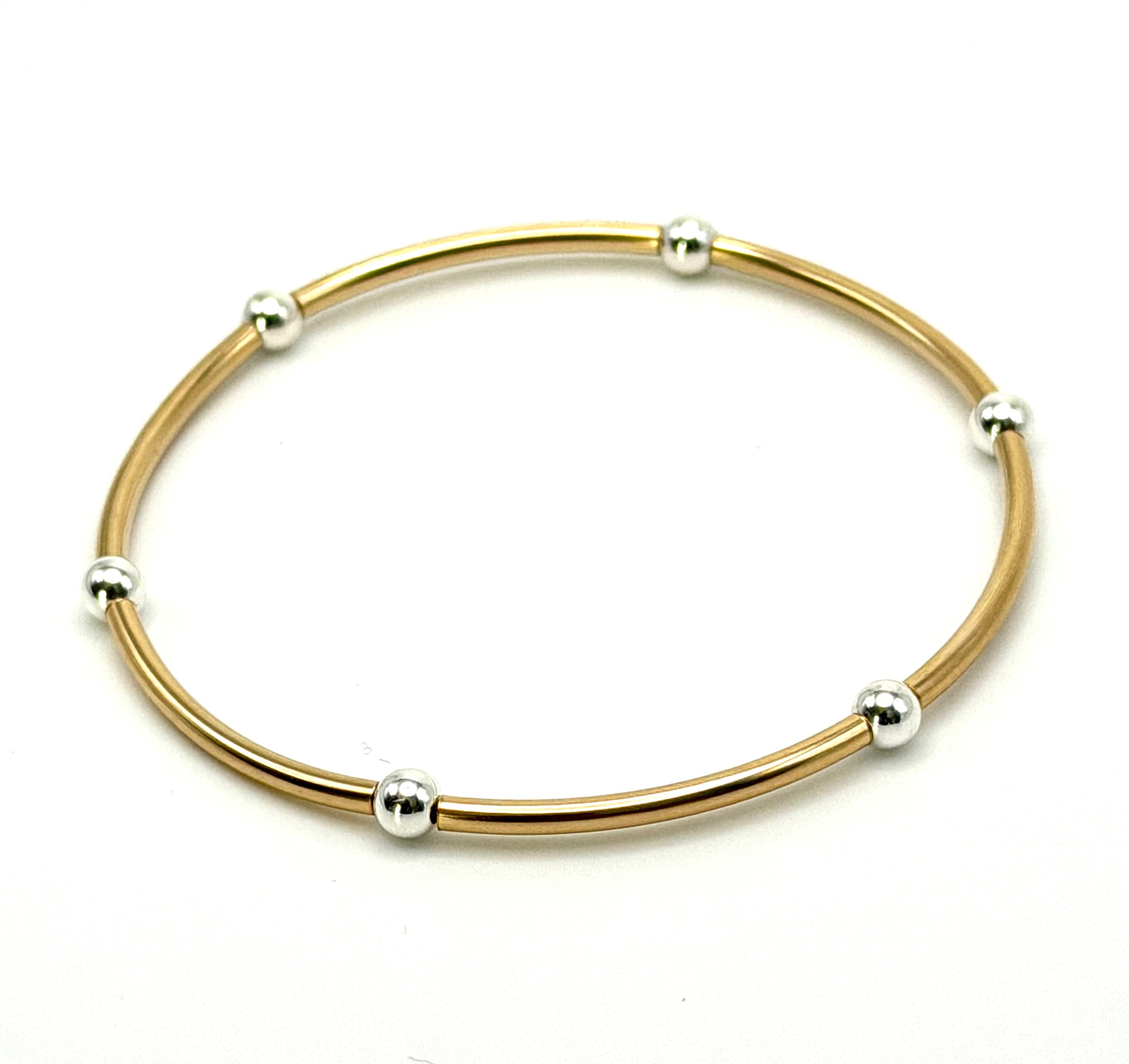 Made with a 14K gold filled tube beads and 4mm sterling silver spacer beads.  This bracelet is the ultimate bangle bracelet!  It is strung on high quality elastic, allowing more versatility and the perfect fit. ❤️